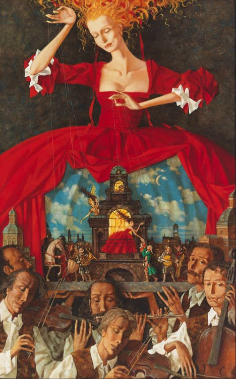 Ainsi va le monde et sa tragédie. Eternel psycho-drame où se croisent indistinctement dans un brouillard épais, Tartuffe, Messaline, Pierrot et Colombine.