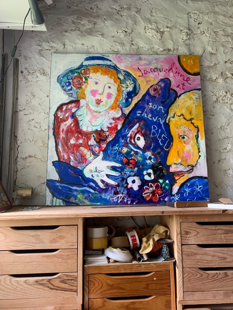Je bouleverse l’ordre de la maison à cause des marches d’étage en raison de jambes que je ne trouve plus. Heureusement que je peins avec la main